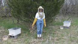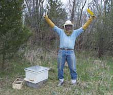Our intrepid photographer and apirary assistant, Dr. Marguerite "Peggy" Fitch. This definitely should be on her vita.
