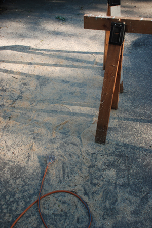 Made plenty o' sawdust in the driveway. The snow shovel was too far "buried" in the garage to use as a dust pan. Since it's untreated pine, the saw dust wound up in the compost pile. We'll see what the tomatoes taste like next year.